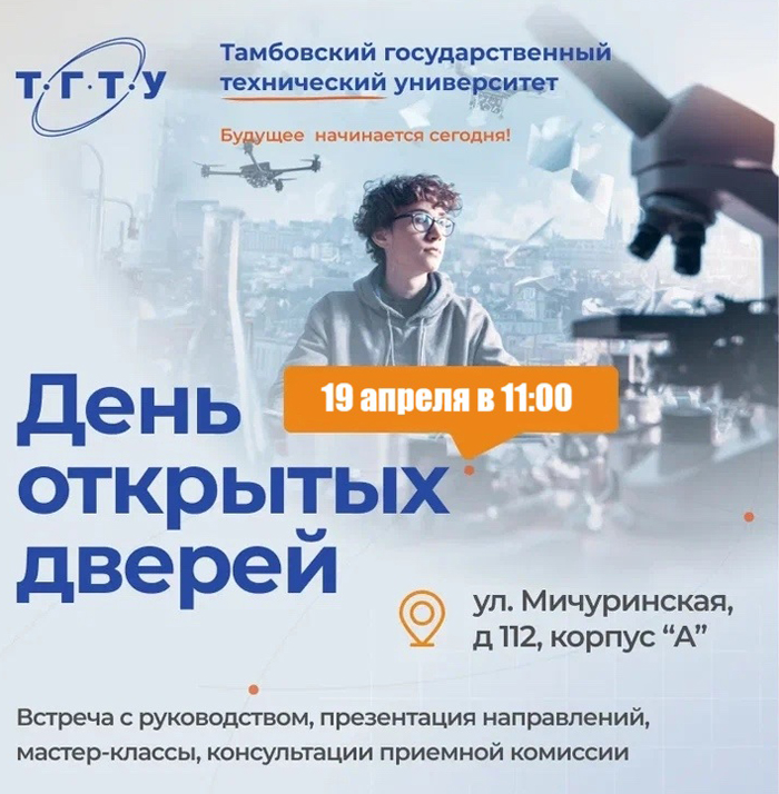 Не упустите шанс увидеть университет изнутри и почувствовать себя студентом ТГТУ!