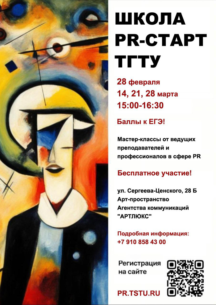 Регистрация: на сайте PR.TSTU.RU или по QR-коду в объявлении.