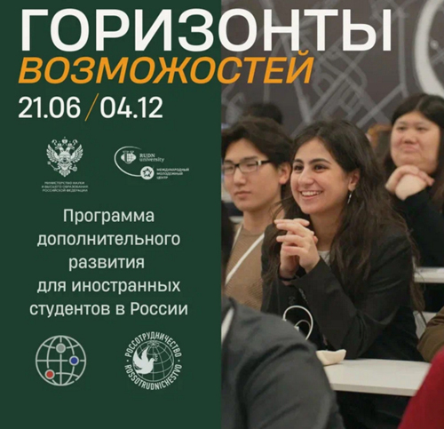 С 1 июля по 19 ноября в г. Москве Международный молодежный центр РУДН совместно с Министерством науки и высшего образования Российской Федерации организует второй поток Программы дополнительного развития для иностранных студентов российских университетов «Горизонты возможностей» (https://horizonty.online/about).